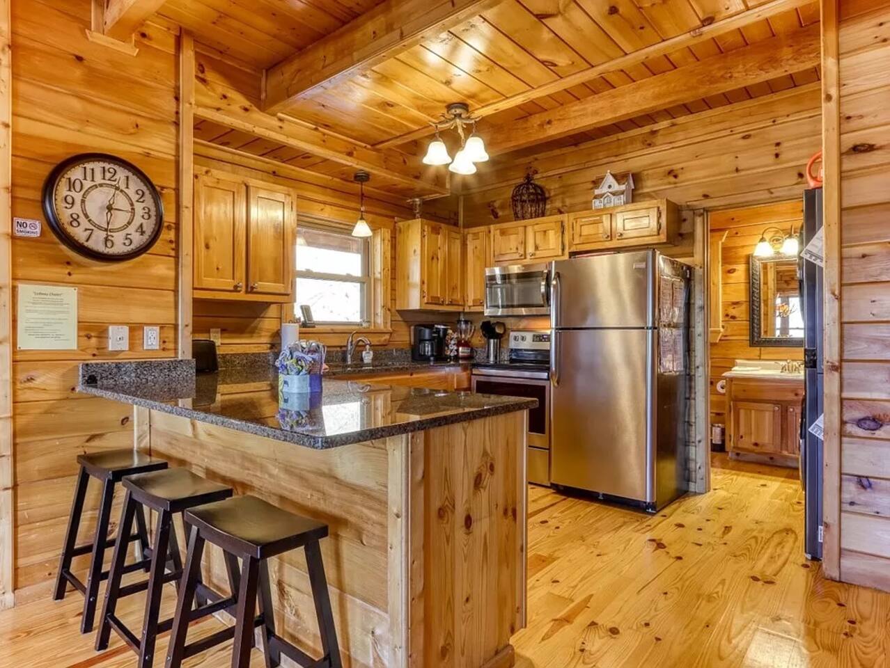 ****REFUNDS**** No exceptions to the cancellation policy can be made for weather, health related reasons, or family emergencies. Please refrain from engaging in any illegal activities. Please note that we do not offer refunds for issues related to weather or road conditions, or any other acts of nature. We regret to inform you that we are unable to provide refunds in the event of power outages or malfunctions with various equipment, such as TVs, internet service, hot tubs, heaters, water heaters, and other appliances. Additionally, we are unable to offer refunds involving the presence of insects or other animals. We strongly recommend that guests consider purchasing travel insurance, as it can help protect your trip and provide coverage in case unforeseen circumstances prevent you from taking your trip. ***FINE - PET FEE*** Due to family allergies, we kindly request that you do not bring any animals during your stay. If our "no policy" is violated, a of $200 per night, per unauthorized pet, will be charged to cover the costs of deep cleaning. The cabin is Not designated as a pet-friendly cabin. If pet fur is found, there will be an extra fee for additional cleaning if more needed to be done plus any damages. We use cabin as our vacation home during holidays and breaks. We appreciate your understanding and cooperation in respecting our situation. *** OCCUPANCY & AMENITIES*** I will do everything I can to make sure the cabin is ready for your stay. It is my mission to provide you the cleanest cabin so that you will become a guest for a lifetime. However, there are rare occasions that the cabin might not be fully presentable by 4 pm or when your hot tub won't be warm until later in the evening. In addition, I provide the luxury cabins in the Smokies with maximum amenities; the cabin is not a hotel room and, therefore, from time to time, appliances, hot tubs, TV, water, electricity, etc. will break down or malfunction. While I cannot refund any monies due to these issues that arise as there are things that are beyond my control, I will respond as quickly as I can to make repairs. ***FIREPLACE*** The gas fireplace comes with a user-friendly timer, making it effortless to switch it on or off. In this region, it is customary for the propane valve to be closed for the fireplace from March till Mid-October. The propane company will not refill the tank after February. ***LATE CHECK-OUT*** There will be an extra $125 at 11am and $250 at noon if any members of party remain in the cabin. Smoking: All cabins are non-smoking; if smoking is detected in the cabin, you will be billed $250-$500 for extra cleaning required. ****NOISE COMPLAINTS***** The resort maintains quiet hours between 10pm and 7am. If guests party can be heard outside of the cabin during your stay requiring a call from the Night Manager, you will be billed $50 for the first call I receive. If it requires any subsequent calls, you will be charged $250 per call. Any calls received after 12:30am will be billed an automatic $250.00 charge and an eviction if necessary. If the police are called, you will be billed an additional $250. If an eviction from the resort is required, you will be charged an additional $400 and removed from the premises with no refund. There is an existing residential neighborhood beyond the tree line. Please be advised that for their comfort the noise complaint policy above will be strictly enforced. No parties allowed! If partying cabin will be evicted immediately. ***ACCEPTANCE && ACKNOWLEDGEMENT *** When you reserve our cabin, you are acknowledging and accepting our house rules which prohibit pets, smoking, and parties inside our property. It is important to note that we have security cameras installed at the front of the cabin for security purposes. If this arrangement causes any concerns for you, kindly inform us promptly. I’m delighted that you are considering staying at our cabin. We value any feedback you may have, so please feel free to provide any private inputs for suggestions and improvements.
