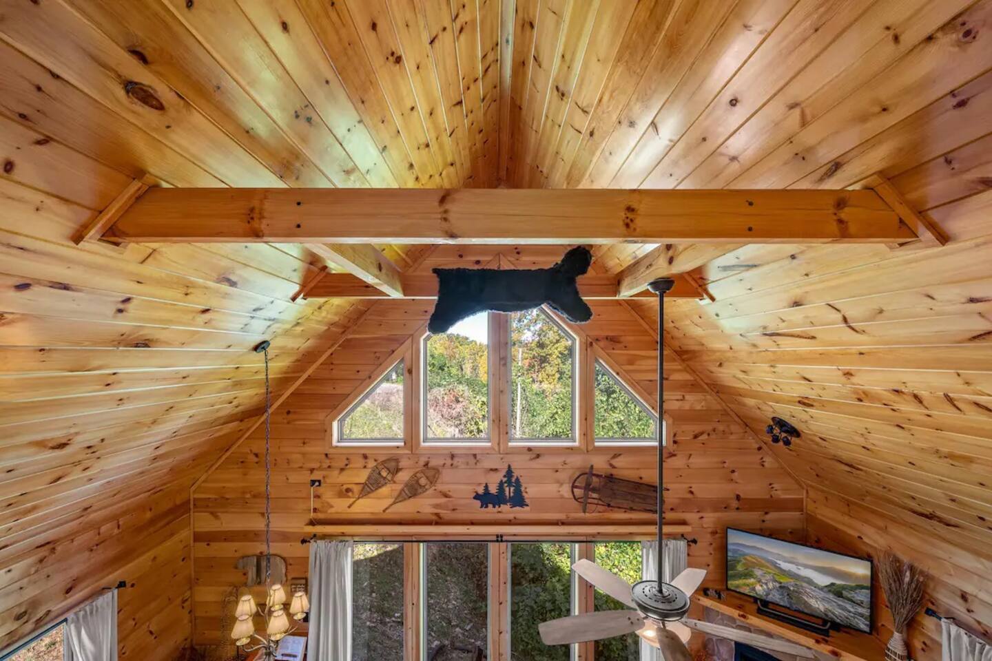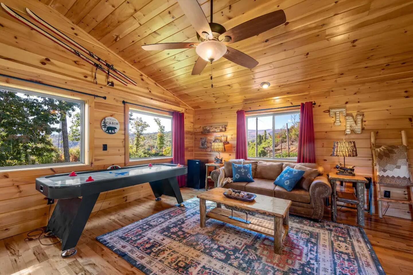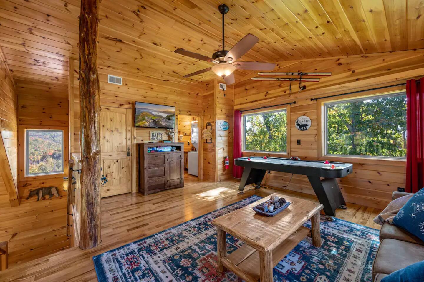 Cozy, warm and inviting, this cabin is ideal for a honeymoon, romantic getaway, or small family vacation. Guests will enjoy the open layout the main floor offers with room to gather for activities and meals. The full kitchen is nicely stocked with all prep ware needed for delicious home cooking and has sight lines to the dining and living spaces for ease of entertaining. One bedroom offers privacy for adults and kids will love sleeping in the loft that also has a TV and air hockey table. Both bathrooms are modern yet styled with rustic finishes providing guests with an authentic mountain aesthetic. There’s no question the outdoor areas are special here with additional living space found on a large deck that not only has amazing views every season of the year, but also boasts a hot tub and charcoal Park style grill. Bedroom Configuration: Main bedroom: 1 King bed with en-suite bathroom Loft: 1 sleeper sofa Amenity extras include: • Complimentary Wi-Fi • Flat screen TVs • Central A/C for Cool and Heat • Fresh linens, towels, and bath essentials for every guest • Washer and dryer • Level parking for 2 vehicles/motorcycles Please note that the cabin is in the mountain. Sometimes things beyond my control may happen. A refund cannot be given, but we will do our best to address any issues you may have. Gatlinburg, Tennessee, United States From the cabin’s prime location midway between Gatlinburg and Pigeon Forge in the Great Smoky Mountains, countless area attractions, restaurants, and activities are just a few minutes’ drive away. • Grab your hiking shoes and explore the mountains! The entrance to Great Smoky Mountains National Park is less than 7 miles from the cabin. Roaring Fork Nature Trail, Mount LeConte, Clingman’s Dome – the highest point in the Smoky Mountains – and Cades Cove all offer endless adventure and breathtaking views. •Family fun awaits at numerous area attractions such as Ober Gatlinburg Amusement Park and Ski Area, Rowdy Bear Mountain Adventure Park, Smoky Mountain Alpine Coaster, and world-famous Dollywood. • Adults can play a round of golf at Gatlinburg Golf Course, then visit one of the area’s many wineries or distilleries for an after-game aperitif. • Spend a day shopping at the historic Old Mill Square for artisan crafts or head over to The Island of Pigeon Forge where you will find over 40 specialty and anchor stores. The cabin is in the Cove Mountain Resort neighborhood, just a 2-minute drive to the main road known as the "Spur" located between Gatlinburg and Pigeon Forge. **SPECIAL NOTE** Please use the "COVE MOUNTAIN ROAD" exit off the parkway to access the neighborhood; otherwise, GPS will route you through an unpaved, rough road. The Gatlinburg Welcome Center is only 1 mile south from the turn onto the Spur. You can park at the Center for free and purchase a wristband to ride the North Parkway trolley that stops in all the popular spots in the two-city area, including the 8-mile craft community. You are also only a short 7-mile drive to the Great Smoky Mountains Park entrance.