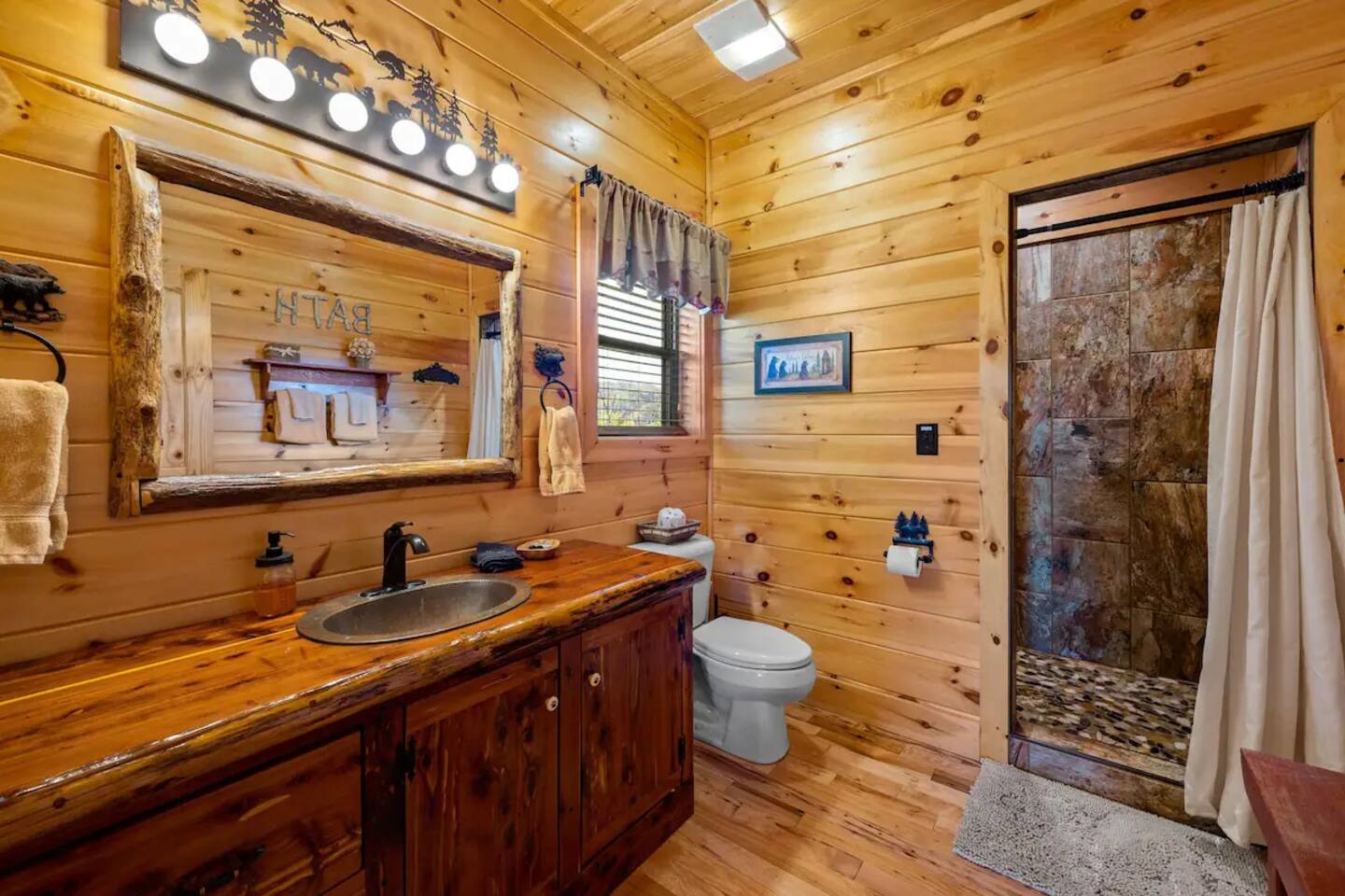 Gatlinburg, Tennessee, United States From the cabin’s prime location midway between Gatlinburg and Pigeon Forge in the Great Smoky Mountains, countless area attractions, restaurants, and activities are just a few minutes’ drive away. • Grab your hiking shoes and explore the mountains! The entrance to Great Smoky Mountains National Park is less than 7 miles from the cabin. Roaring Fork Nature Trail, Mount LeConte, Clingman’s Dome – the highest point in the Smoky Mountains – and Cades Cove all offer endless adventure and breathtaking views. •Family fun awaits at numerous area attractions such as Ober Gatlinburg Amusement Park and Ski Area, Rowdy Bear Mountain Adventure Park, Smoky Mountain Alpine Coaster, and world-famous Dollywood. • Adults can play a round of golf at Gatlinburg Golf Course, then visit one of the area’s many wineries or distilleries for an after-game aperitif. • Spend a day shopping at the historic Old Mill Square for artisan crafts or head over to The Island of Pigeon Forge where you will find over 40 specialty and anchor stores.